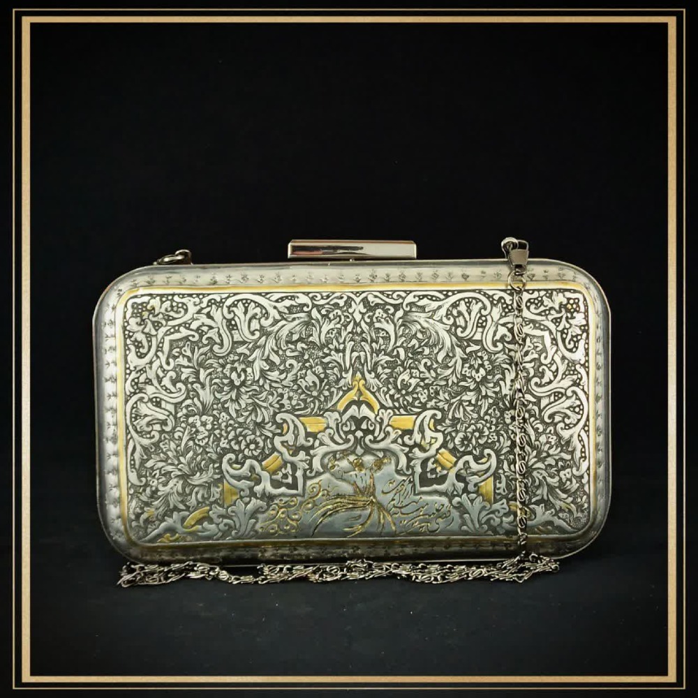 کیف زنانه قلمزنی شده مدل “مولانا”، آراسته شده با هنر ریزه قلم.⁣